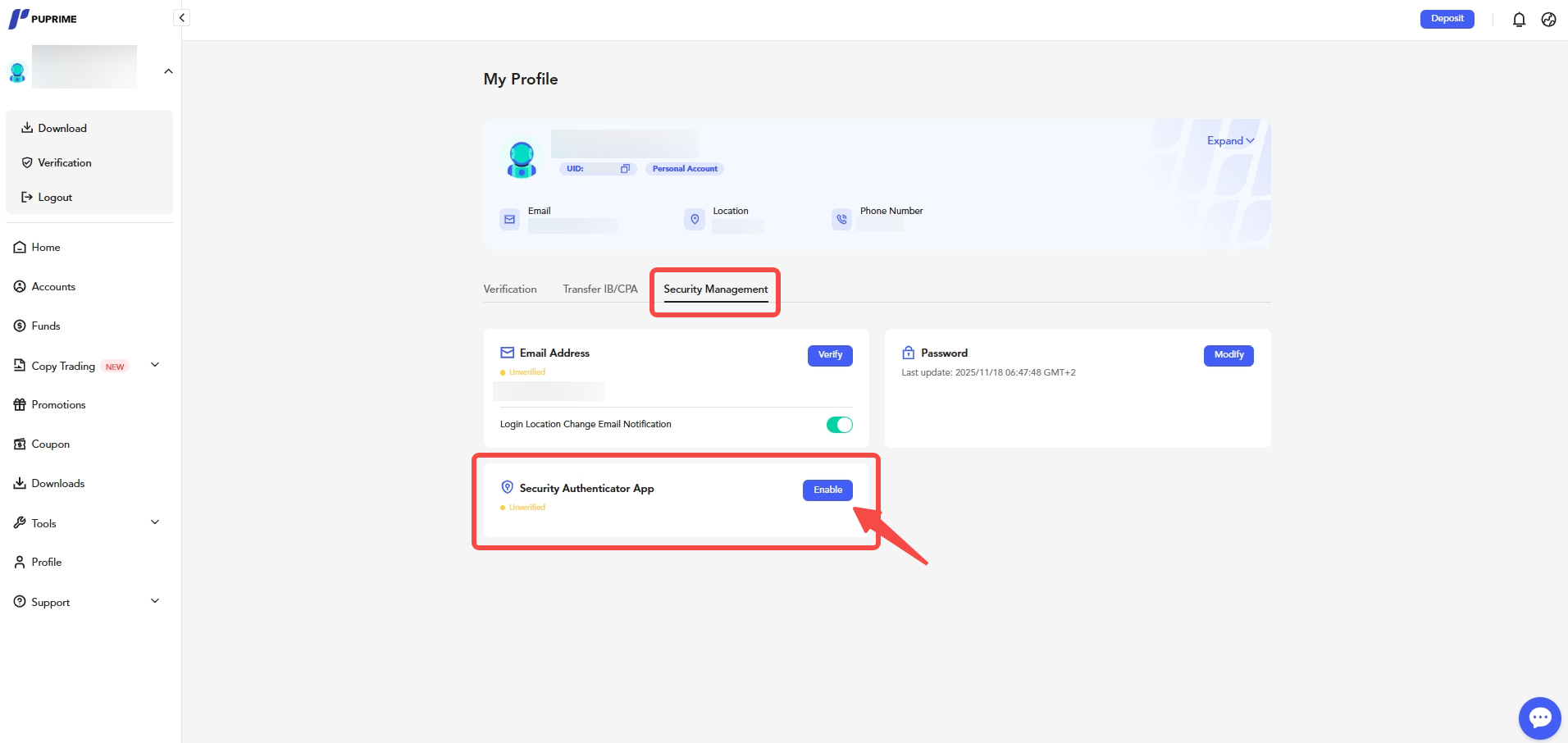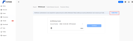 - Select “Enable” to authorise Security Authenticator App. Clients are required to download Google Authenticator or Microsoft Authenticator and scan the Authenticator code from the app.