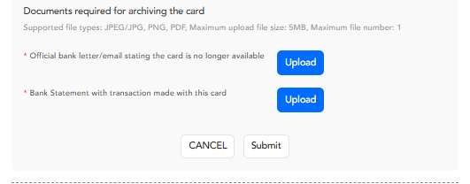Once "Archive" is selected, you will be required to upload the required documents to proceed with the archival process.