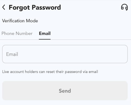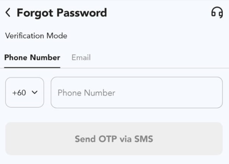 - Enter your registered phone number or email, and click “Send OTP via SMS” for phone number or “Send” for email.
